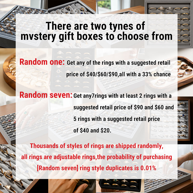 14K gold-plated, 5A zircon rings · Adjustable size (US 5–9) · Thousands of surprise styles · Hypoallergenic, tarnish-free