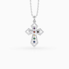 Where every color holds a gift, and every facet reflects a truth. This radiant cross pendant captures the essence of spiritual strength and eternal faith, designed to shine with both elegance and meaning.