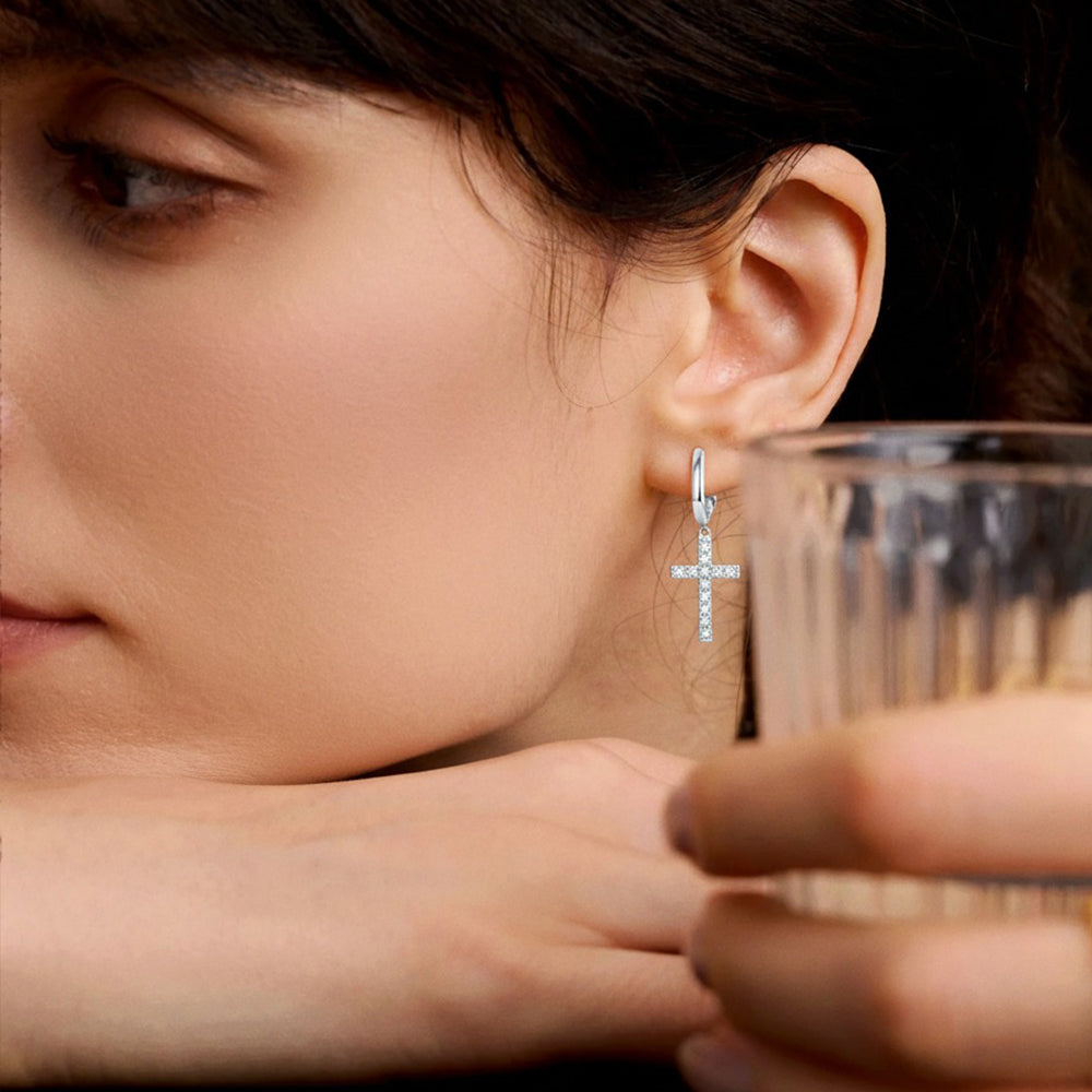 Moissanite Cross Drop Huggie Earrings in 925 Sterling Silver